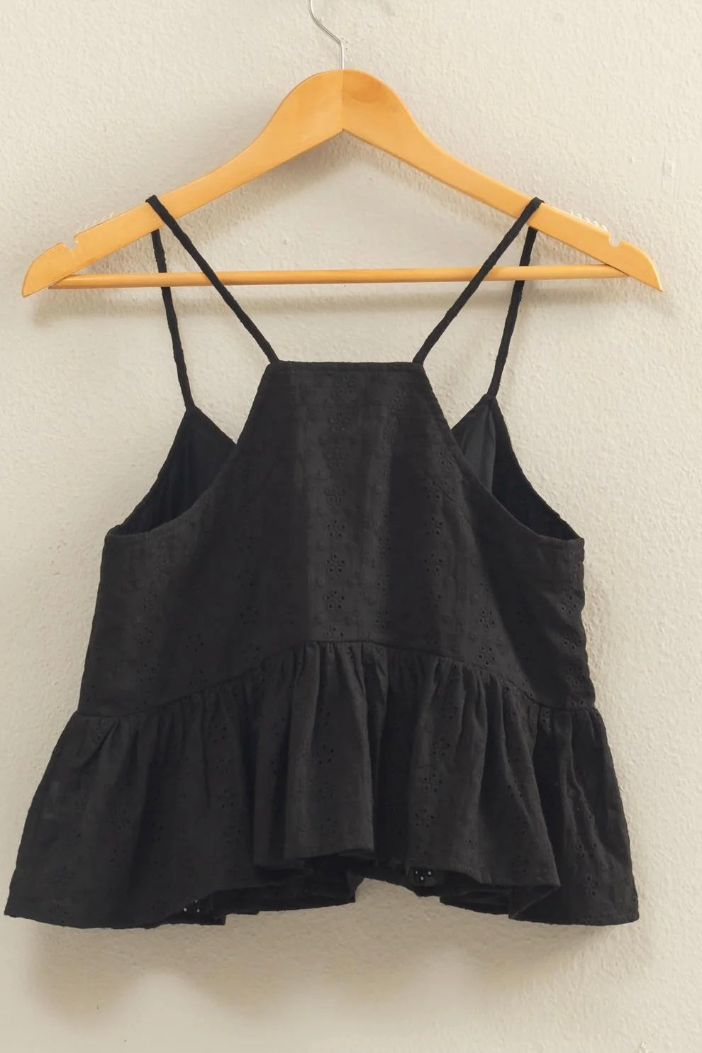 black eyelet button detail peplum top